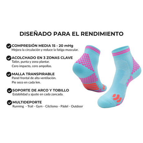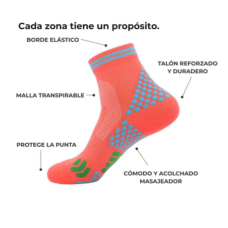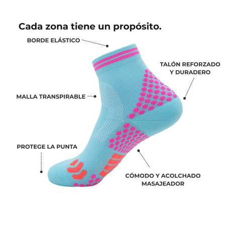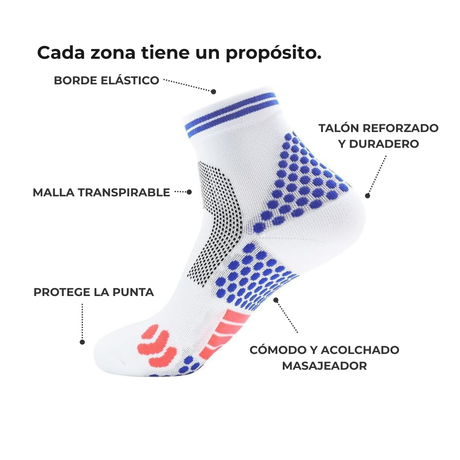 Calcetines técnicos diseñados para mantener tus pies frescos, secos y sin rozaduras kilómetro tras kilómetro.