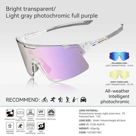 Lentes de Running / Ciclismo Premium - Road to Sky — 3 en uno (Fotocromática, Polarizada, Nocturna)