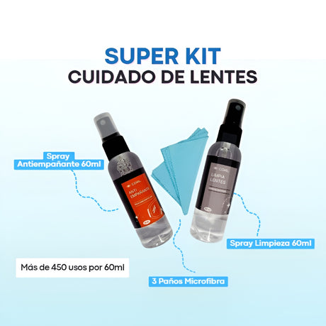 Super Kit Limpieza Lentes + Antiempañante + 3 Paños Microfibra