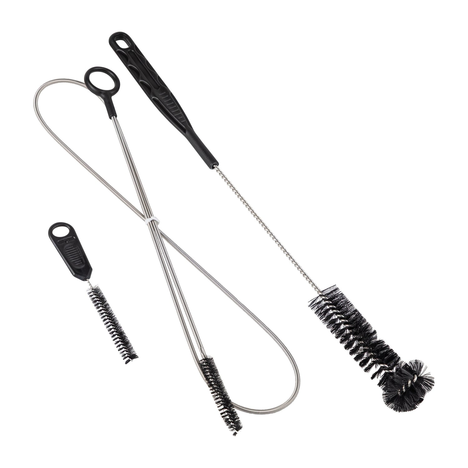 Fabricado con acero inoxidable de alta calidad y cerdas de nailon, este kit está diseñado para llegar a todos los rincones de tus recipientes. Sus tres cepillos especializados te permiten eliminar la suciedad sin esfuerzo, limpiando a fondo las boquillas, bombillas y el interior de cada botella.